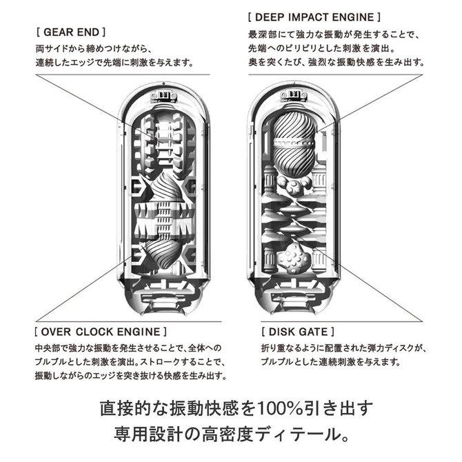 ゲルの内側から発生する強力なダブルバイブレーションと、振動効果を最大限に発揮する高密度ディティールが織りなすシナジーによって、新次元の気持ちよさを実現しました。