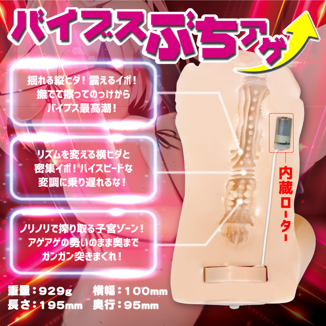 入口から走る縦ヒダと大小のイボ・コブが、ローターの振動との相性抜群。10パターンの振動でラン