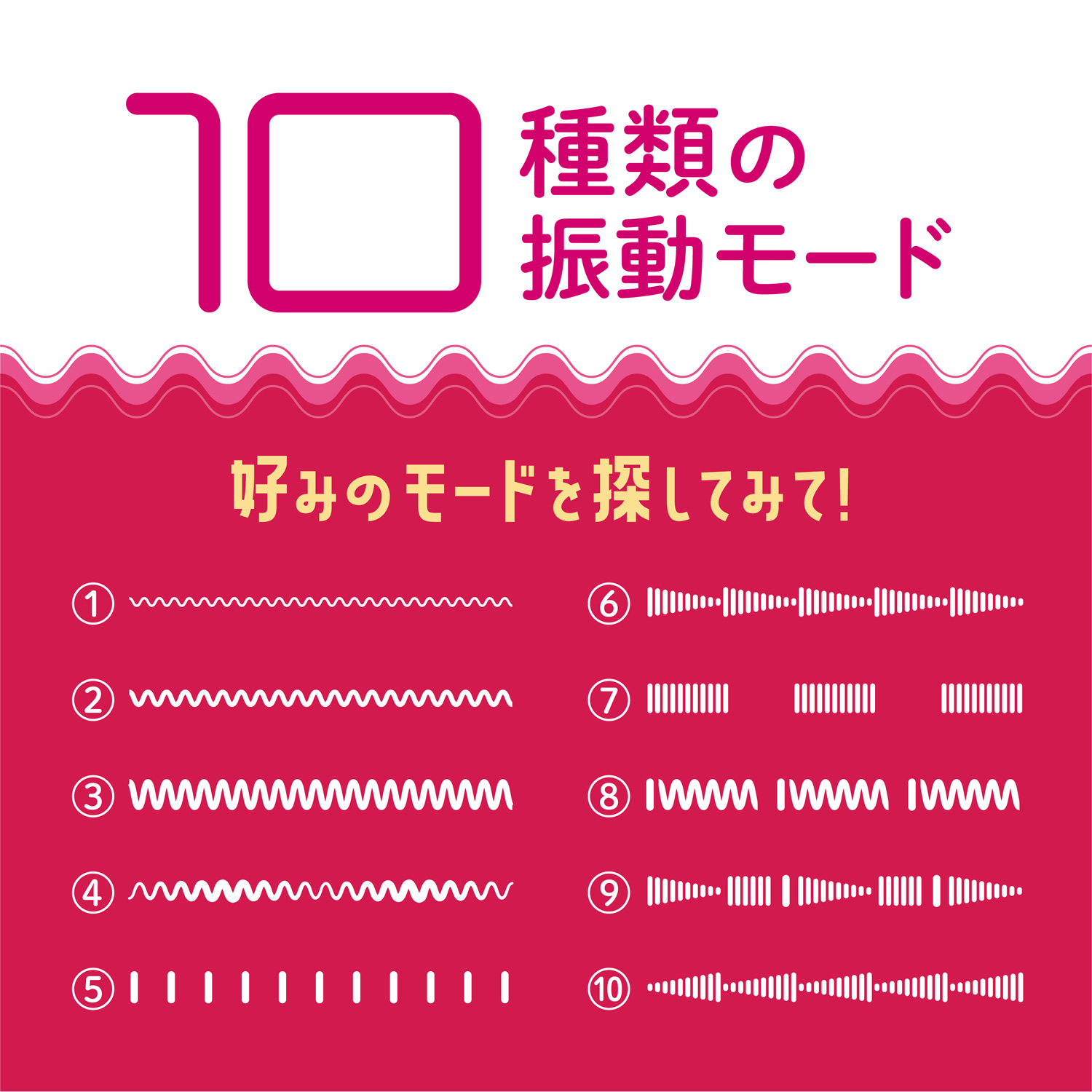 操作方法も簡単で10種の振動モードからお好みのパターンを探して見てください。