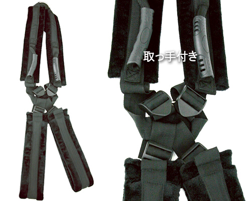 リュックのように拘束具を男性が装着し、女性の足に輪っかを通すだけで駅弁プレイが楽しめます。