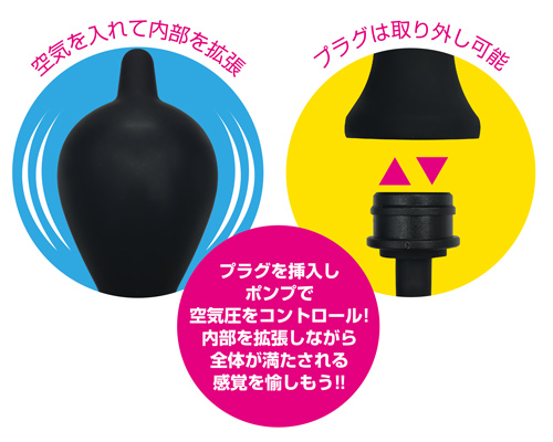 プラグを挿入しポンプで空気圧をコントロール!プラグは取り外せるので、丸洗いも可能。