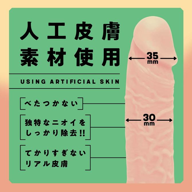 人工皮膚素材によって、てかりすぎないリアルな皮膚を再現しながら根元まで使えるストレート形状、誰にでも安心して使えるようにひとつひとつ丁寧に作っています。