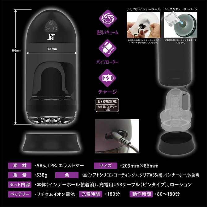 絞るように吸い込んで、奥で震えるのが電動オナホール「NOL VACULLA(バキュラ)」です。