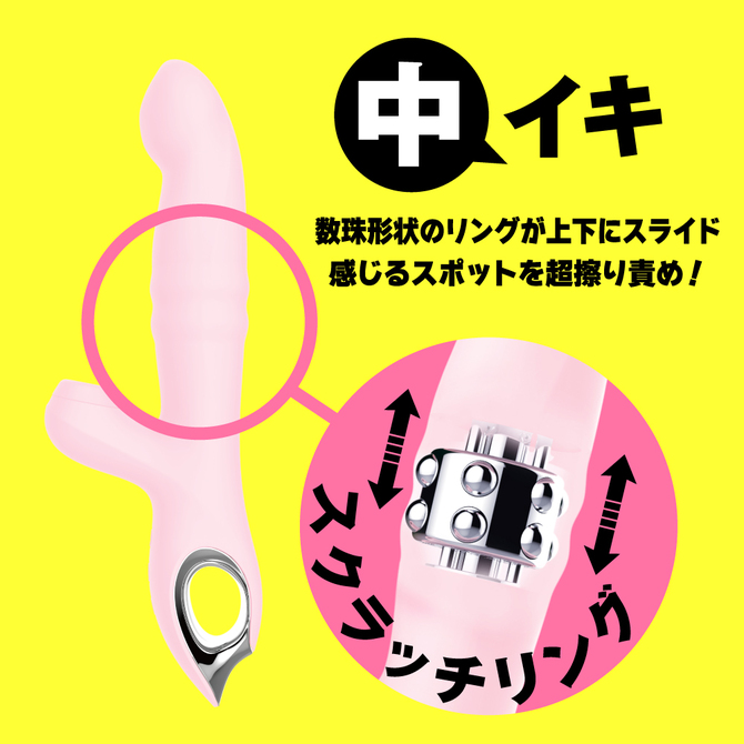 数珠形状のリングが上下にスライドし、感じるスポットを超擦り責めするスクラッチリングギミック!