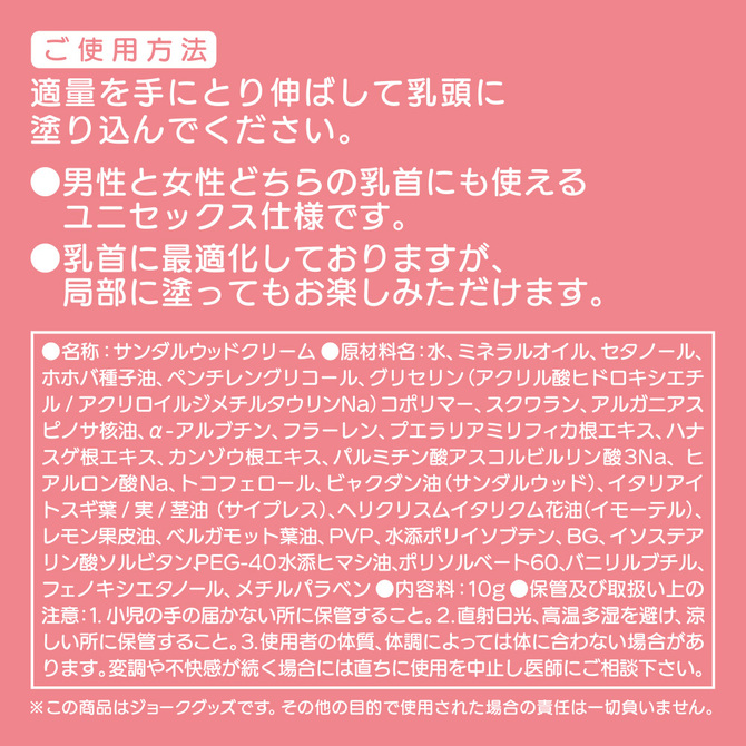 【悪用厳禁】パートナーにお使いの際は事前に同意を得てください。※乳首に最適化しておりますが、局部に塗ってもお楽しみいただけます。