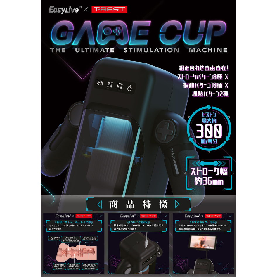 両手でコントローラーを持つデザインは、ただの遊び心だけでなく、使用時の安定性・操作の快適性を両立できるよう考え抜かれ開発されました。温熱機能を搭載し、ストロークパターン(8種)と振動パターン(10種)を自由に組み合わせることが可能!