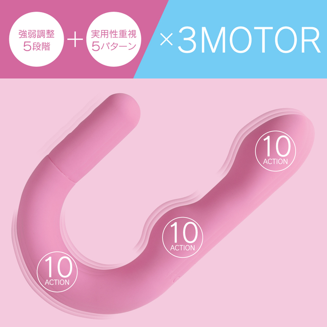 振動パターンは細かい強弱調整5段階+実用性の高い5つの振動パターンの計10パターン×3モーターを搭載しており、様々なパターンの刺激をお楽しみ頂けます。