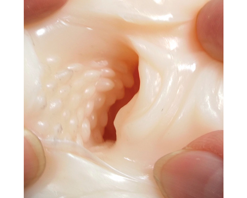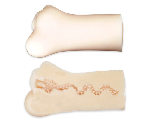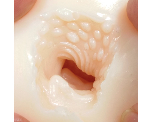 肉厚感満点のプニプニ感がたまらない、気持ち良さ無限大のオナホール。 ボディには生肌再現リアル素材を使用しているので、もはや本物を超えたかと思えるほどの驚きの挿入感が味わえ、やや小ぶりの可愛らしい入り口から挿入すると、無数に配置された細かなツブとヒダが、悶絶するほどの快感をもたらします。 しかも、内部は狭い上にクネクネと曲がるうねり構造なので、刺激をより一層高めながら、全体を強力な締め付け感で包み込みます。 真っ直ぐなボディで持ちやすいので、使い勝手が良くて、快感を逃すことなく堪能できるホールです。