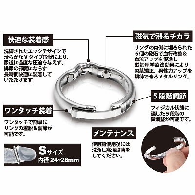 磁気のパワーで血流促進!亀頭部分で包皮をまとめて包茎矯正!男の自信を呼び覚ますメタルリング!!