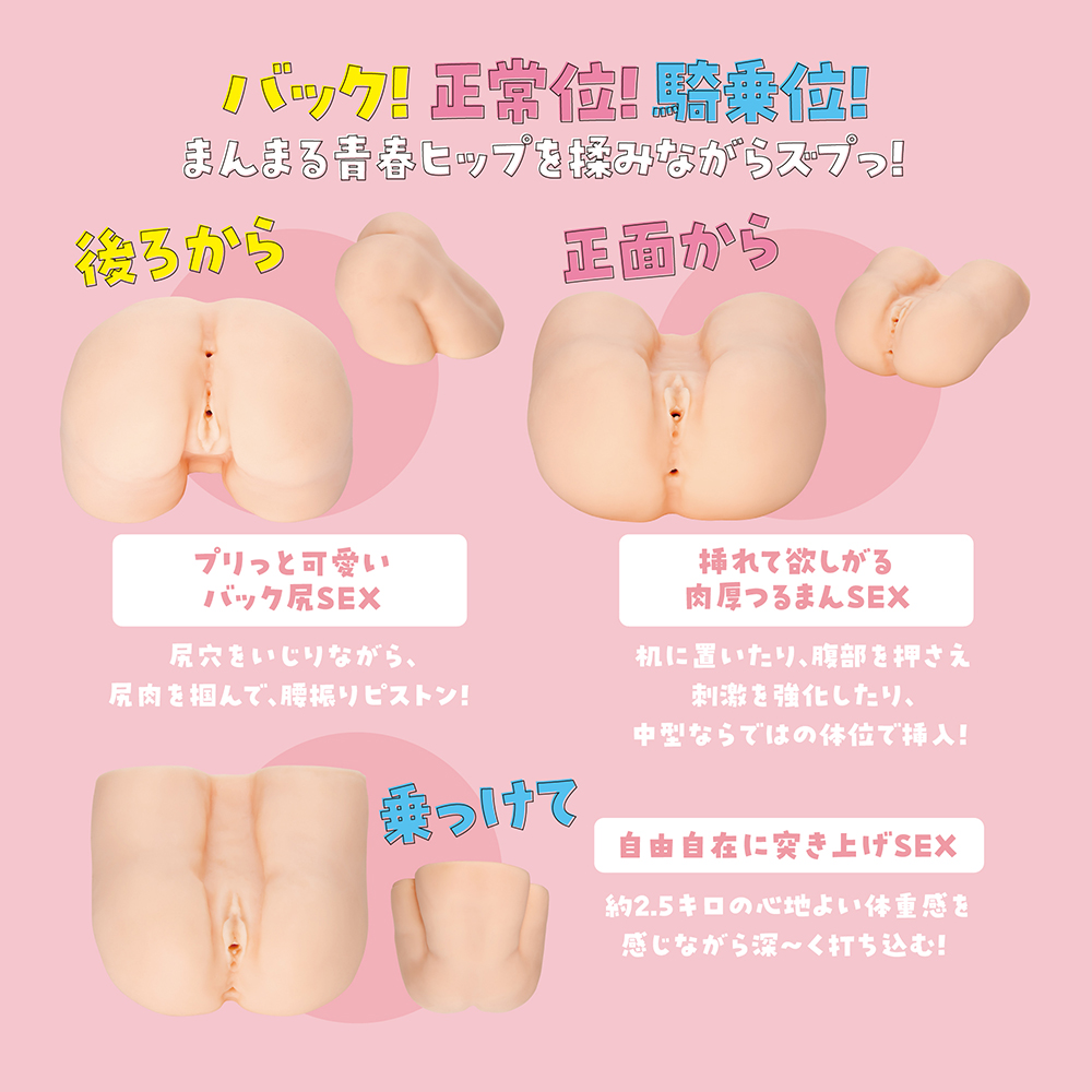 お尻をプリッと突き上げたチビ娘の下腹部を模した独立型2穴オナホール。