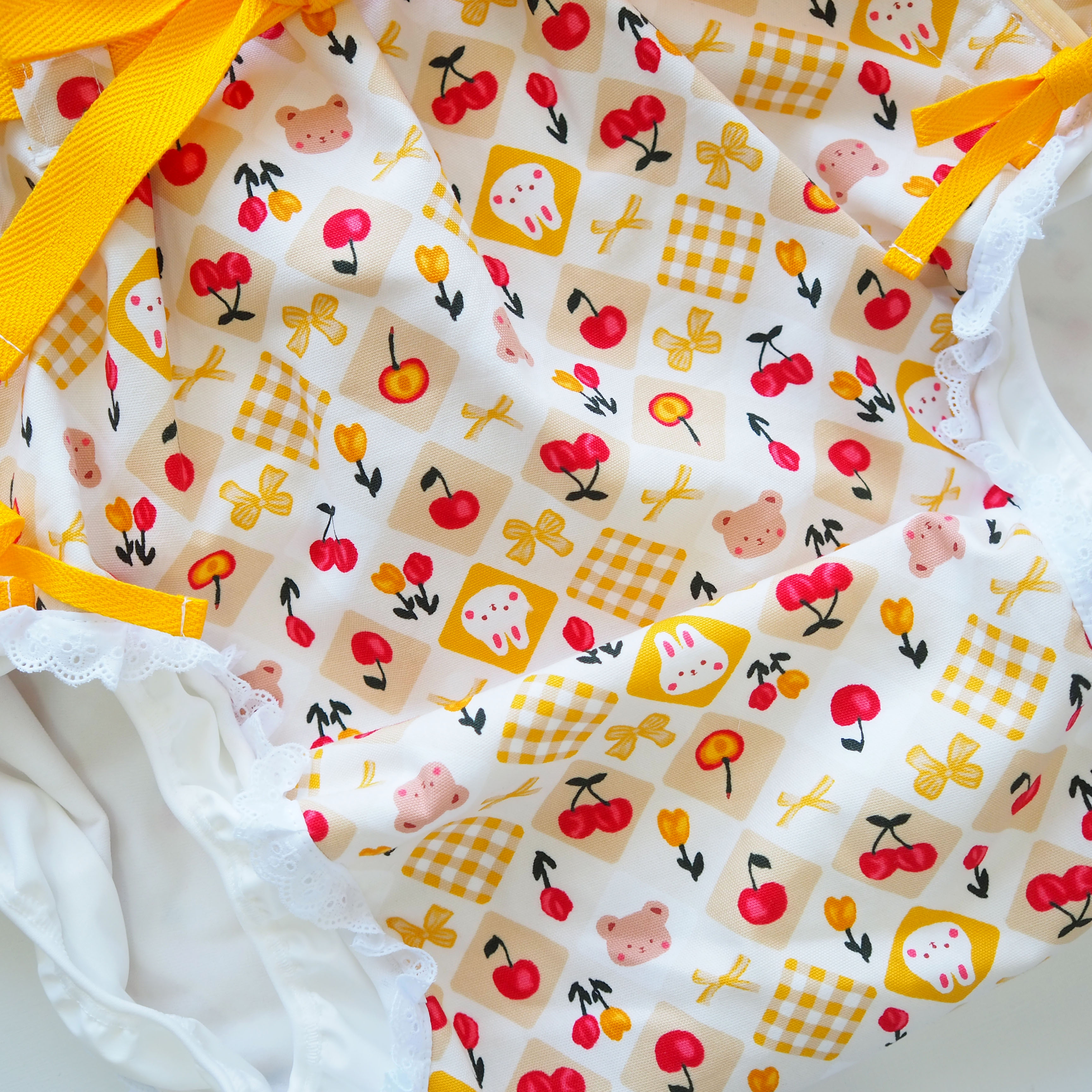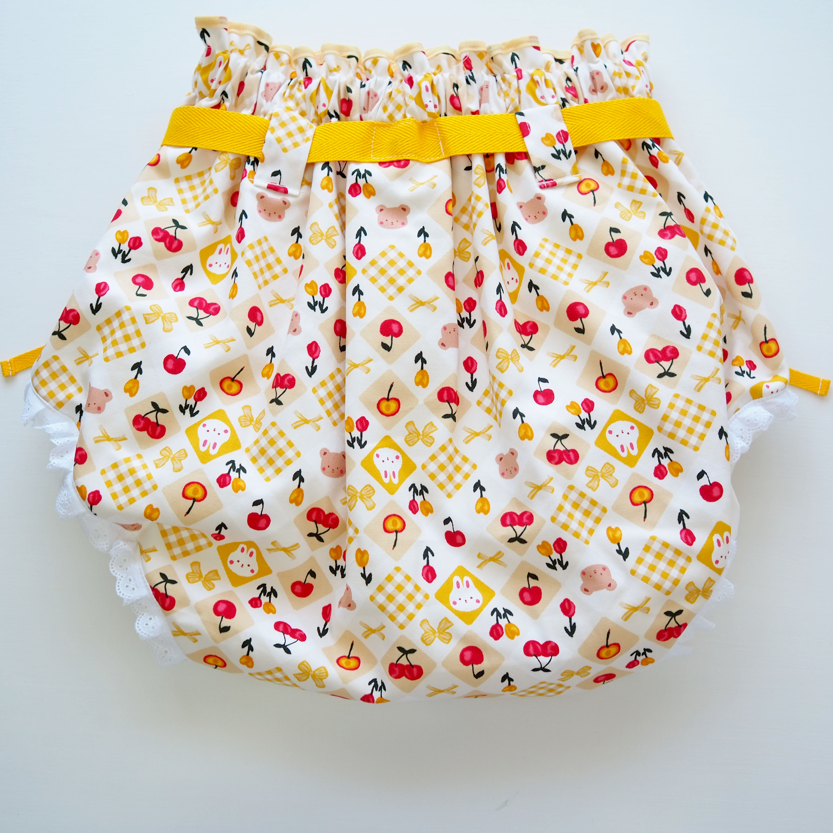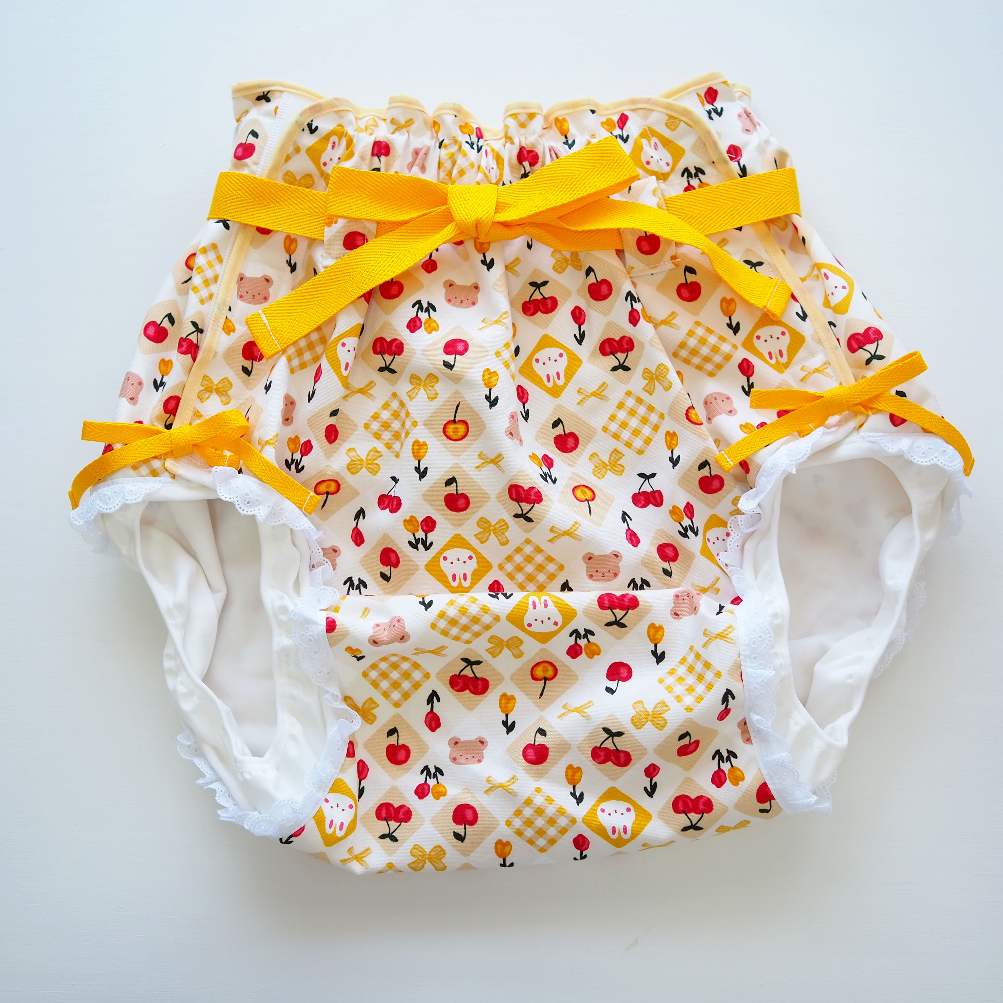 おむつカバー4点セット くまちゃん×うさちゃん×リボン(Lサイズ/イエロー)【Feline Babies】