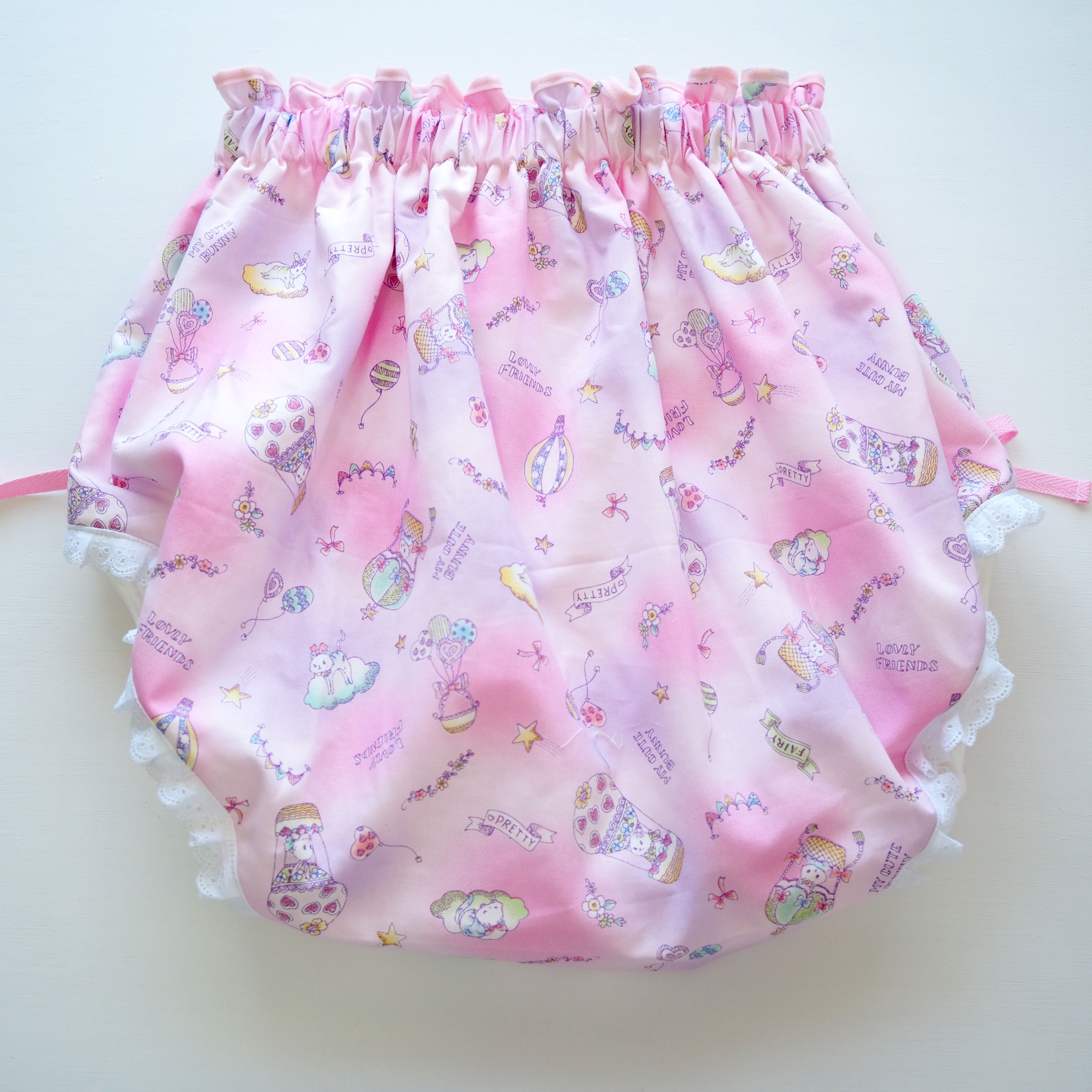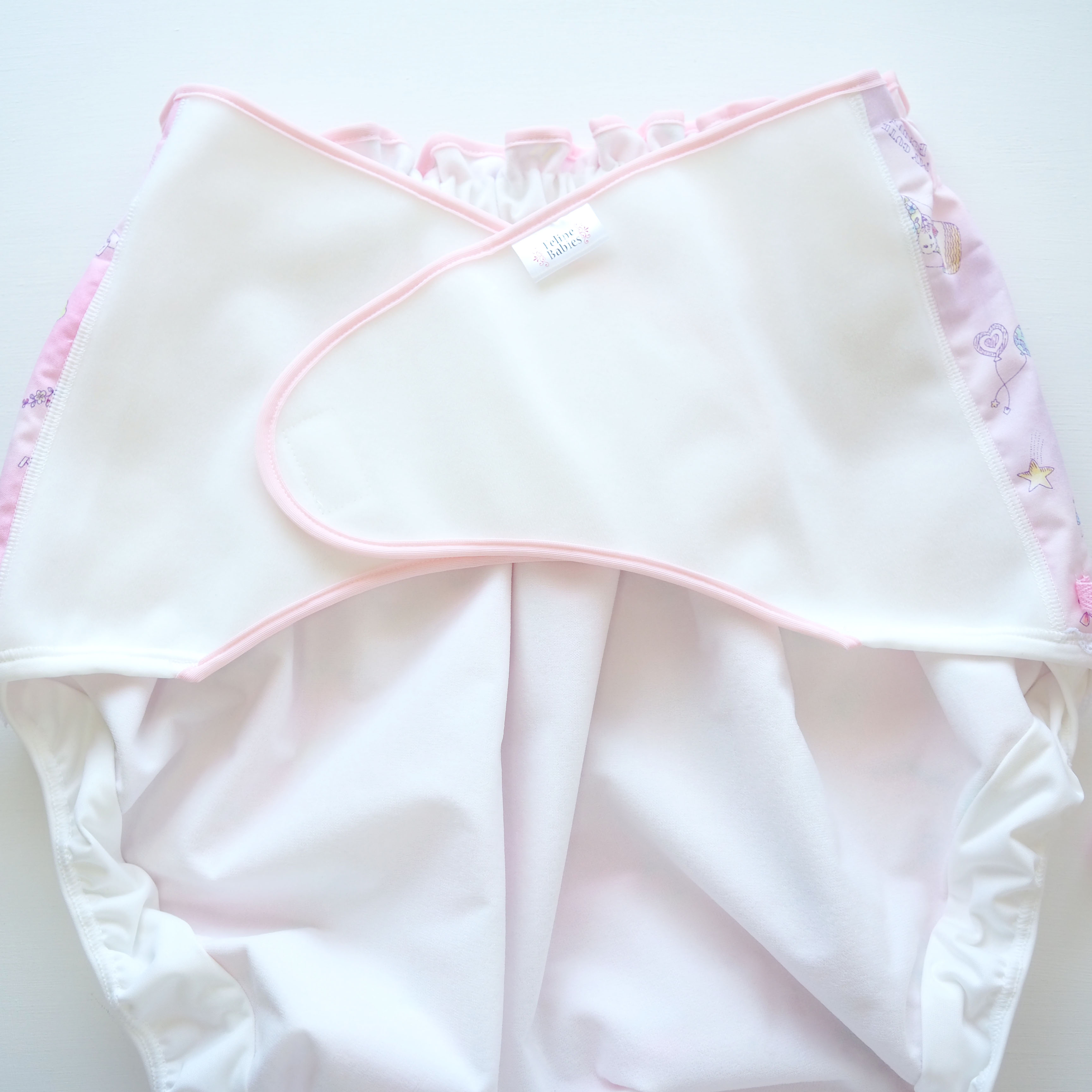 おむつカバー うさちゃん×気球(Lサイズ/ピンク×紫)【Feline Babies】