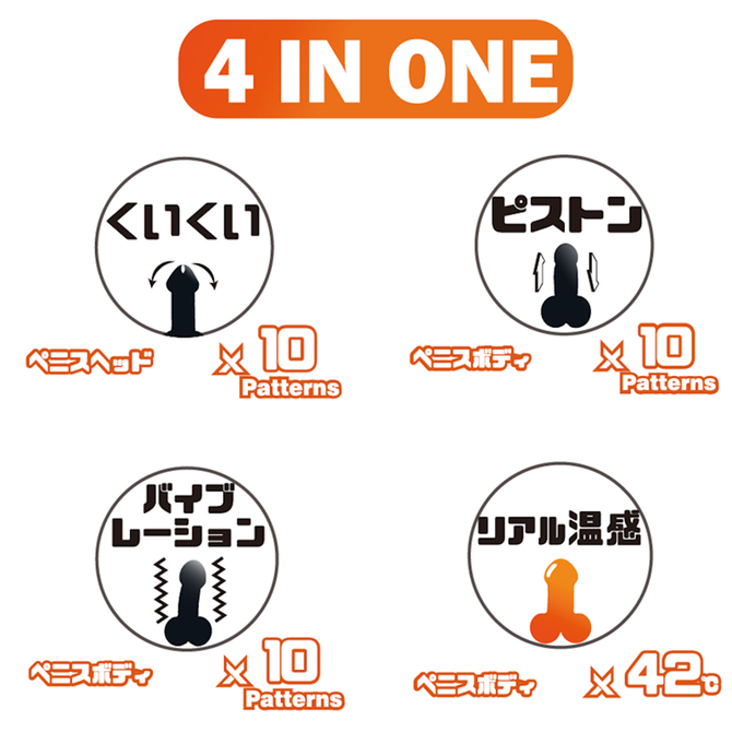 異様な形の突起物がち●の中を複雑に刺激し今までのバイブでは体験出来ない刺激が感じられます。10種類回転ピストンx10種類振動=100種類パターン!