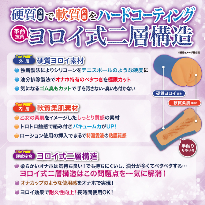 鎧乙女オトメイルは硬軟素材が接合した革命技術「ヨロイ式二層構造」の非貫通オナホールです。