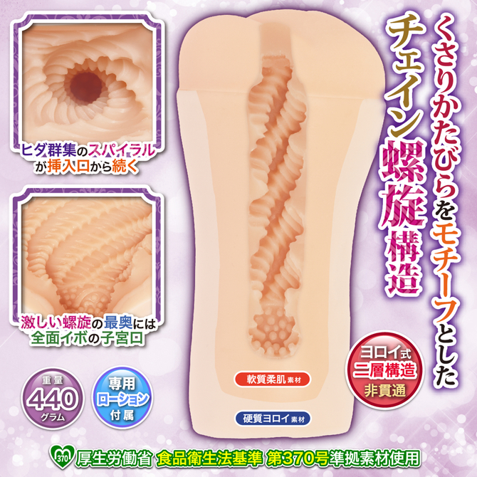 鎧乙女オトメイル 望月千代女はくさりかたびらをモチーフとした「チェイン螺旋構造」が高刺激に纏わり付く粘膜質感、べたつき、臭いを排除した硬軟素材接合のヨロイ式二層構造「鎧乙女オトメイル」を是非お試しください。