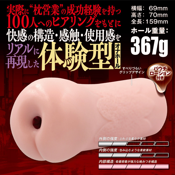 実際に“枕営業”の成功経験を持つ100名へのヒアリングをもとに、快感の構造・感触・使用感をリアルに再現した体験型オナホール。