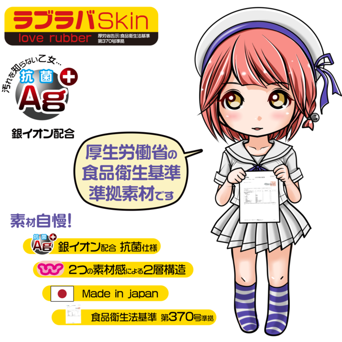 厚生労働省食品衛生基準第370号準拠素材採用したラブラバSkin。