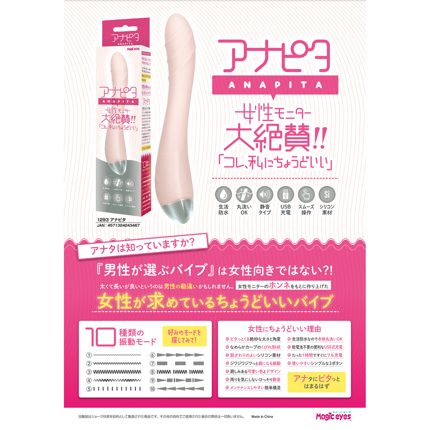操作方法も簡単で10種の振動モードからお好みのパターンを探して見てください。