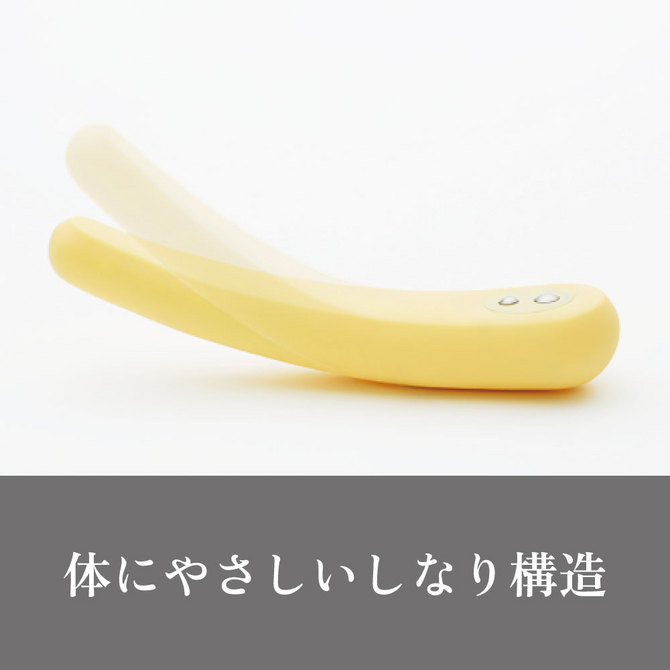 黄色い「みかづき」はストレートタイプ。挿入感は太めで長い指が入ってきたような感じです。カーブがついているので、快感ポイントをスムーズに刺激できます。