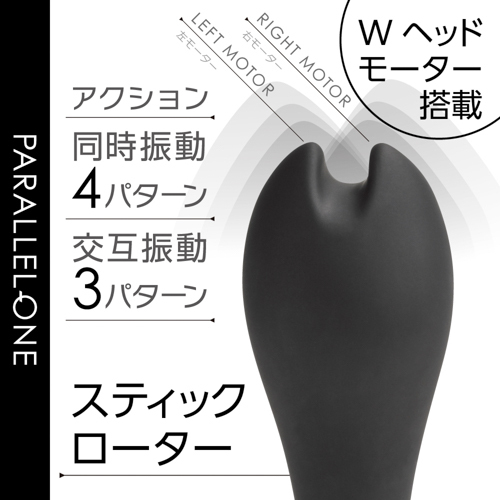 先端に並列で2つのモーターを搭載して、個別に振動させる事が出来るツインモータースティックです。