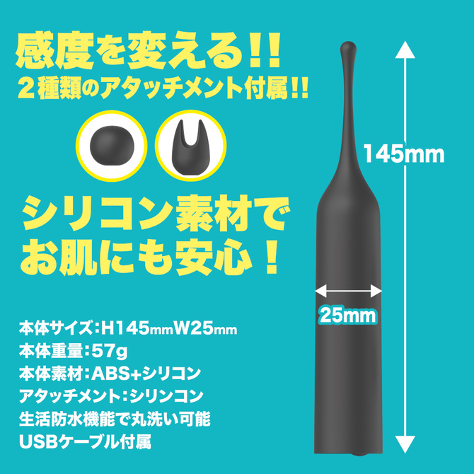 振動パターン10種搭載、本体重量57gと超軽量。生活防水タイプの為、丸洗い可能。