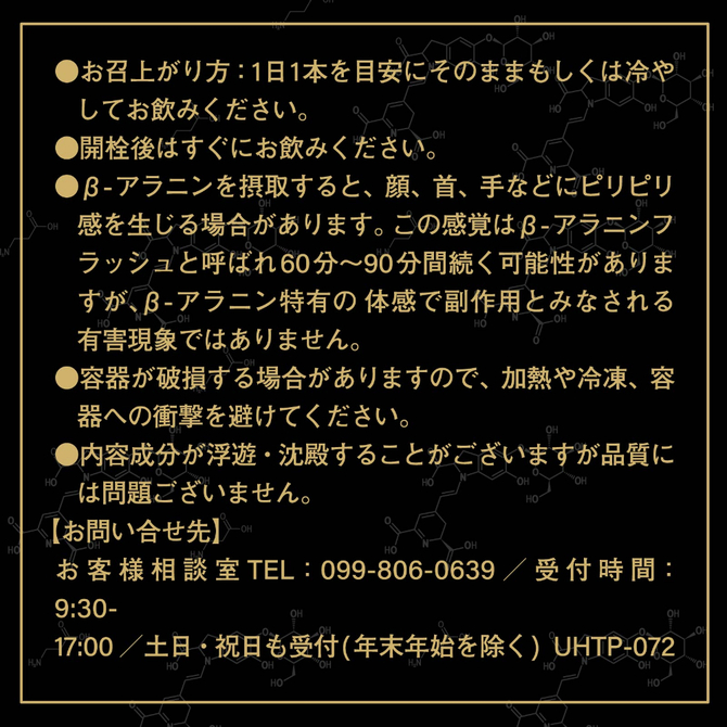 ※β-アラニンを摂取すると、顔、首、手などにピリピリ感を生じる場合があります。