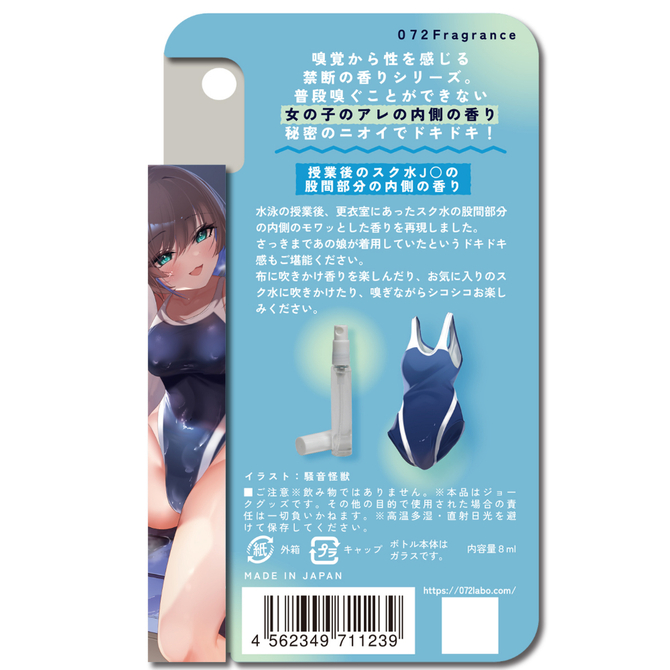 ●布に吹きかけ香りを楽しんだり、お気に入りのスク水に吹きかけたり、嗅ぎながらシコシコお楽しみください。
