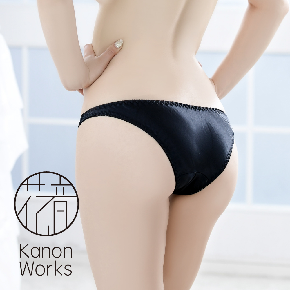 【花音】サテン生地使用穴あきフルバックショーツ(ブラック) KWS013