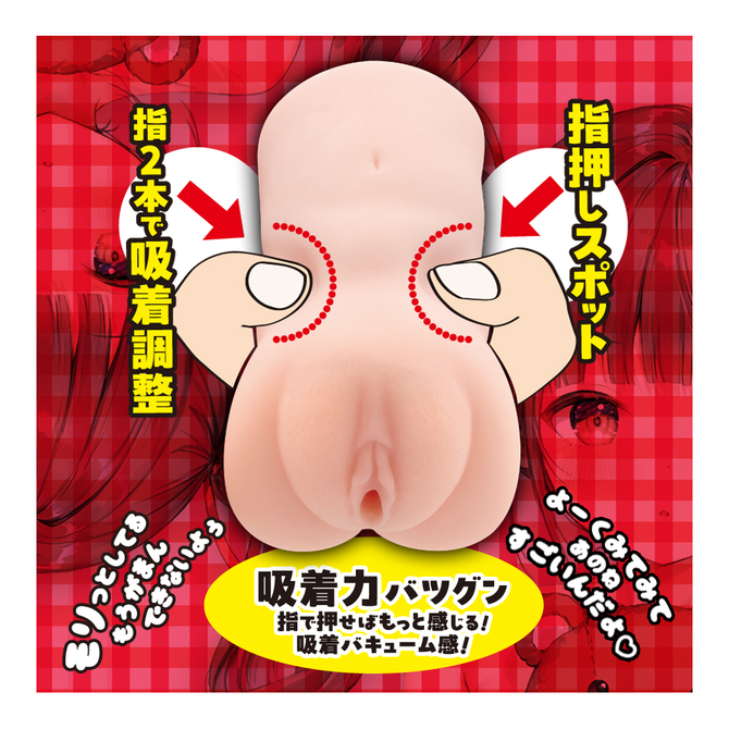 挿入中に、本体中部の凹み部分「指押しスポット」を押せば、さらに吸着バキューム感がアップ!