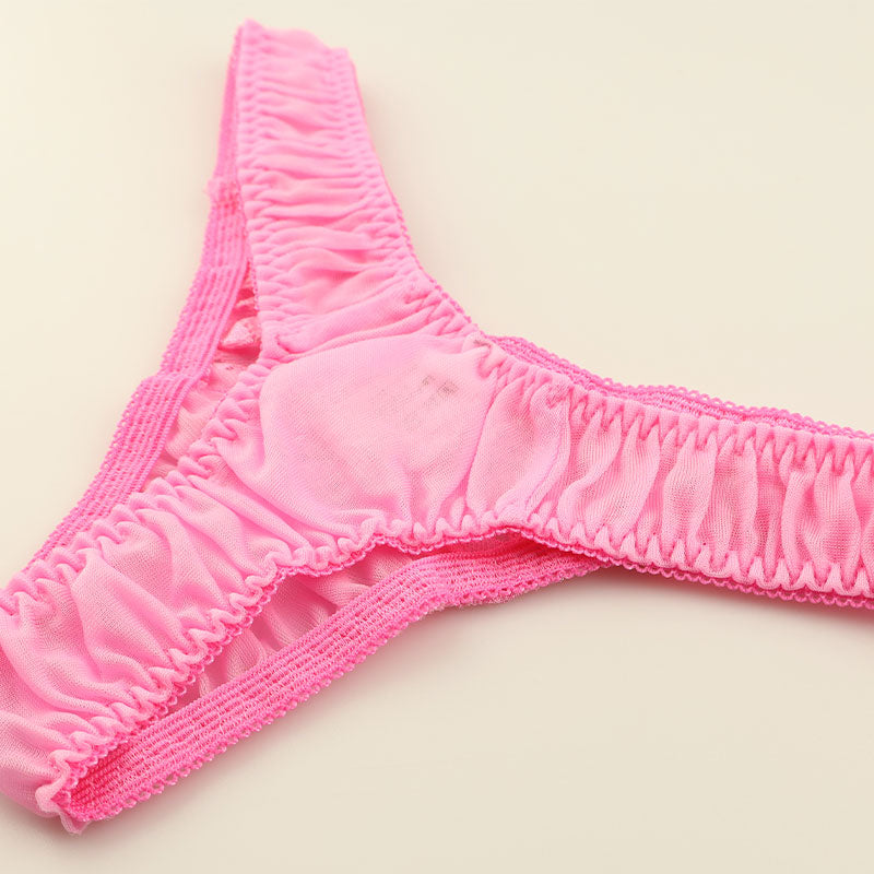 柔らかな感触が魅力のNHK生地を使用した、軽やかでふんわりとした履き心地のレディースTバックショーツ。透け感のあるシースルー素材が、エレガントで洗練された印象を与え、軽快で爽やかな雰囲気を演出します。肌にやさしくなじむエアリーな風合いで、長時間の着用でも心地よさが続きます。フロントには、透け感が美しく上品なデザインのレースをあしらい、女性らしい華やかさをプラス。股上は約12cmのローライズ設計となっており、ウエスト周りをすっきりと見せながら、綺麗でエレガントなシルエットを叶えます。軽やかさと上品さを兼ね備え、日常使いから特別なシーンまで幅広く楽しめる一枚です。