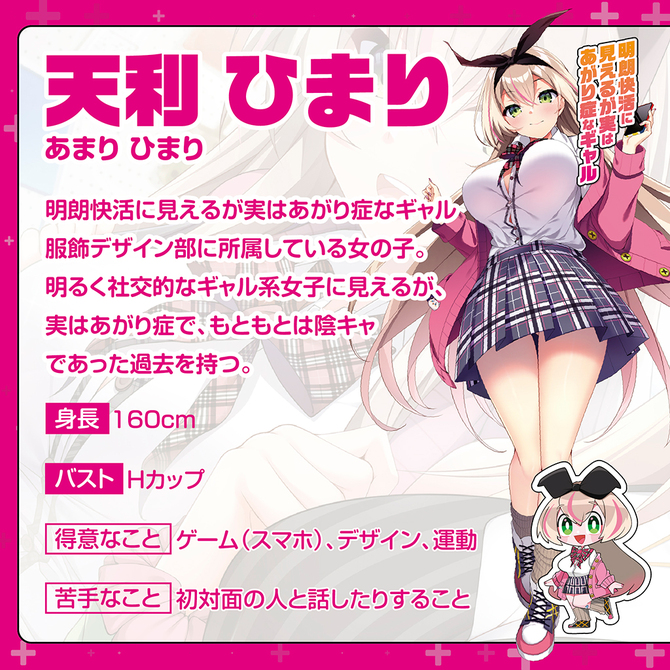 明るく社交的なギャル系女子に見えるが、実はあがり症で、もともとは陰キャであった過去を持つ。
