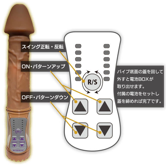豊富なスイング8パターン先端ローターは12種類の振動パターンかき乱すスイングリバース生活防水で洗浄時も安心安全