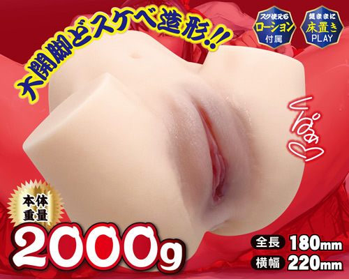 超重量級、ズッシリ肉厚な生膣&生尻感覚で、本物以上のハメ心地を体感!!床置きプレイに対応しているので、正常位でも後背位でも楽しめる。膣穴と尻穴が付いていて、交互にだってハメられる。